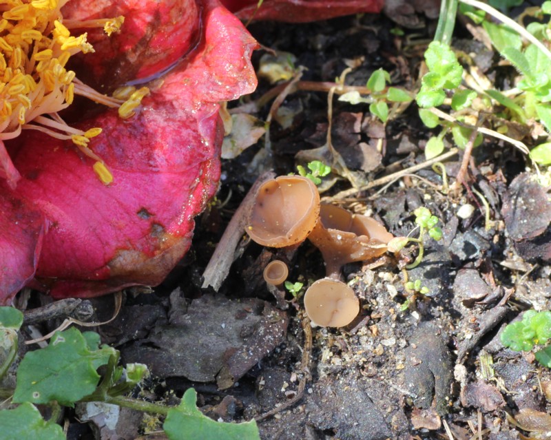 | ・地上に落ちた椿の花葉に胞子を付着、組織を分解して生長し、晩秋に菌核を形成して翌春発生する。 |