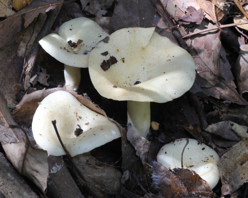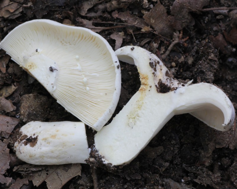 分泌した乳液や断面が乾けば淡灰緑色になる「アオゾメツチカブリ」と言うのがあり、一般に小形で、表面には殆どシワがないそうですが、本種と酷似していて外見で判断するのは難しいようです。乳液が変色するのに20〜30分程度は掛かるようで・・・そこまで確認しませんでしたので、4つ星にしておきます。
