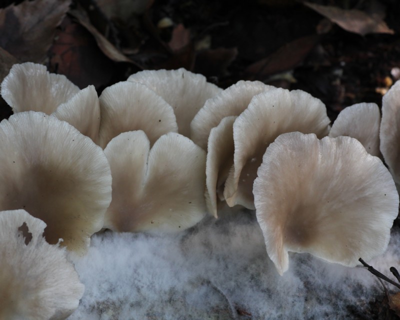 本種は「ヒラタケ」よりも小さくて、色も厚みも薄い。 |