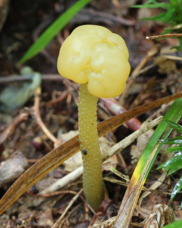 | ・頭部(子嚢盤)/径3〜15mmの類球形〜丸山形で黄土色〜黄緑色。表面に子実層を形成する。 |