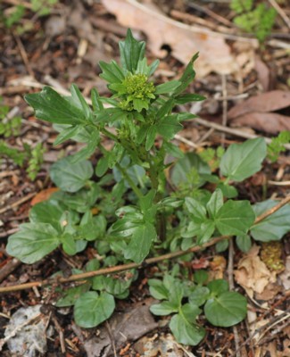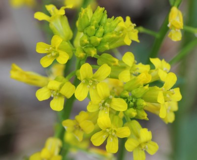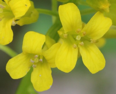 同じ仲間で在来種の「ヤマガラシ(B. orthoceras)」とよく似ている。花柱や果実の長さの違いで見分けられるようです。ヤマガラシより、花柱は長く、果実は短い。