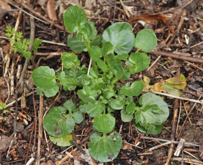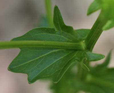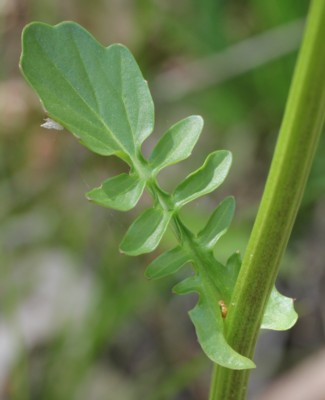 ・根生葉と下部の葉は羽状に裂け、頂裂片は円形で大きい。上部の葉は無柄で基部は耳形となって茎を抱く。