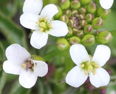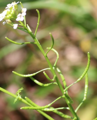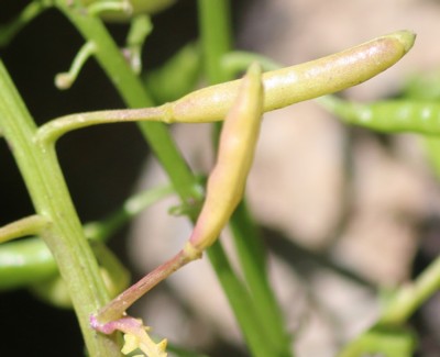 ・果実は長角果。長さ1〜2cmの円柱形で上向きに曲り、熟すと2裂する。