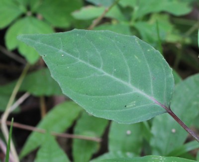 ・葉は対生。長さ3〜8cmの長卵形で、先はとがり、波状の鋸歯がある。