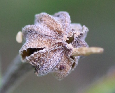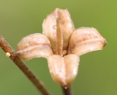 ・果実は刮ハ。長さ4〜12mmの棍棒状、8稜があり、熟すと先が4裂する。