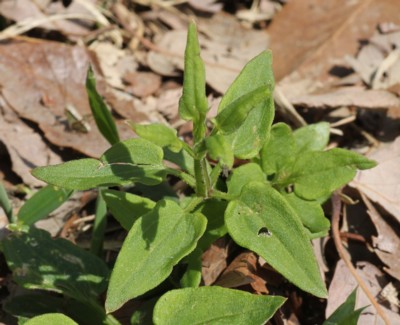 ・葉は対生、長さ3〜7cm、幅1〜3cmの三角状卵形。4個輪生しているように見えるが、2個は托葉が発達したもの。