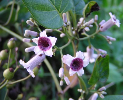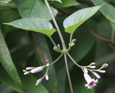 ・茎はつる性で、他の木や草などに巻きついて長く伸びる。