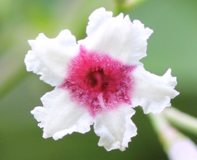 | ・花は長さ約1cmの鐘形で、先は浅く5裂する。のどと内側は紅紫色。 |