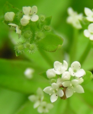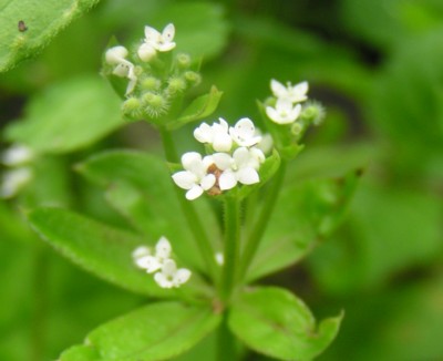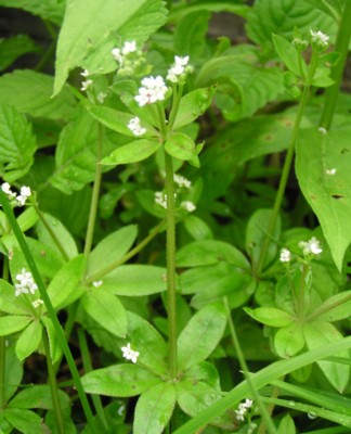 同じ仲間の「クルマバソウ(G. odoratum)」は、葉の数が6〜10個と本種より多く、茎には毛がありません。また、良く似た変種の「クルマムグラ(var.