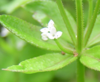 ・葉は長さ3〜4cmの長楕円形で、普通6枚が輪生する。裏面の主脈には棘がある。