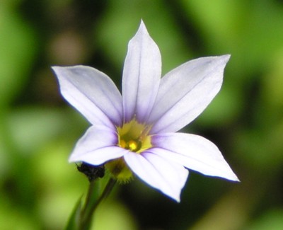 ・花は直径約1cmで淡青色、花弁は6個。「ニワゼキショウ」より小さい。