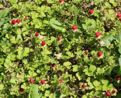 同じ仲間「ヤブヘビイチゴ」。ヘビイチゴ属は本種とヤブヘビイチゴの2種だけ。