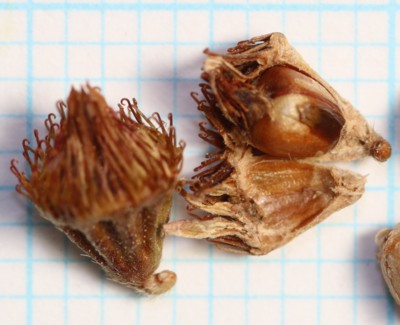 ・果実は痩果。長さ3mmほどの俵形で、萼筒と萼片に包まれて成熟する。