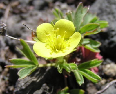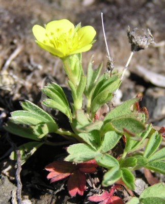 ・地を這うように生え、根茎から花茎と葉を出す。全体に黄褐色の毛がある。