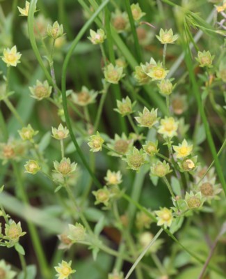 ・花は直径0.8〜1cmで茎の上部に集散状につく。花弁は5個で黄色。