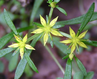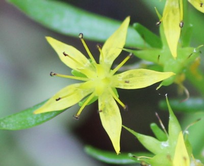 ・茎頂に集散状の花序を出し、黄色の5弁花をつける。