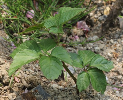 ・葉は5小葉からなりる鳥足状複葉。頂小葉は4〜8cmの狭卵形。