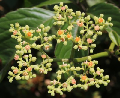 ・葉に対生して平たい花序をだし、直径約5mmの花をつける。