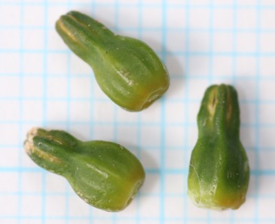 ・果実は長さ2〜2.5mm、楕円状壺形で、中に種子が1個入っている。