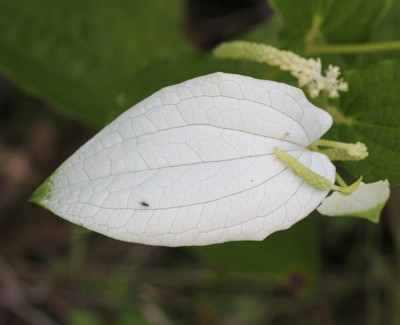 ・葉は互生。長さ5〜15cmの卵状心形。上部の葉は、半夏生の頃に白くなり、8月頃に再び緑色になる。