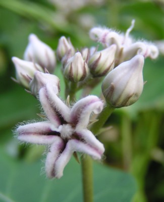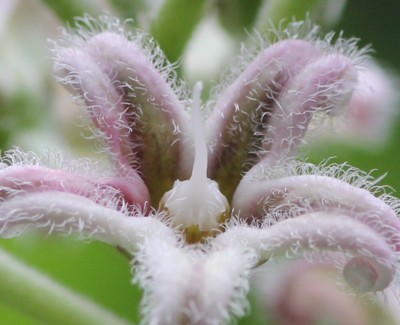 | ・花冠は直径約1cmで5裂する。中心部にはずい柱があり、柱頭は長く花冠からつきでる。 |