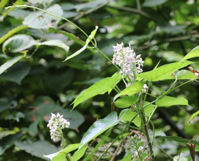 ・葉のわきから総状花序を出し、淡紫色の花をつける。花の内側には白い毛が密生して白っぽく見える。