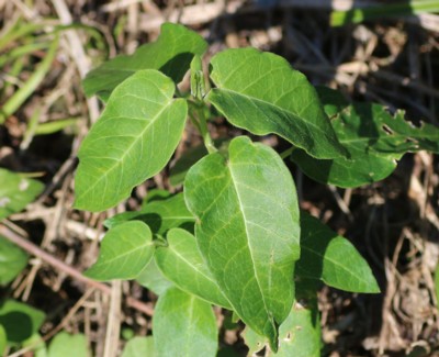 | ・葉は対生、長さ5〜10cm、幅3〜6cmの長卵状心形で裏面は白緑色を帯びる。 |