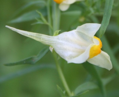 ・花は長さ約3pの唇形で淡黄色、または白色。