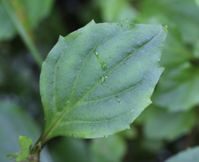 ・葉は対生し、長さ1〜4cm、幅1〜2cmの卵形。