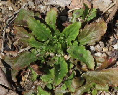 ・葉は根元に集まり、長さ4〜7cm、幅1〜1.5cmの倒卵形または楕円形。