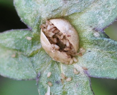 ・果実は刮ハ。扁球形で熟すと裂開して種子を出す。