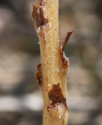 ・茎は黄褐色で直立、高さ10〜25cmになり、鱗片状に退化した葉がつく。