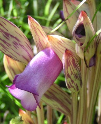 | ・萼は舟形で長さ2〜3p、黄褐色で淡紅紫色のすじがある。 |
