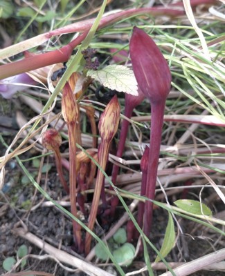 ・茎は赤褐色で、数個の鱗片葉が互生する。