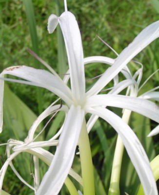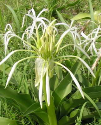 別名「浜木綿」の方が良く知られ、白い鱗茎を祭事の榊につける幣(ぬさ)をつくる木綿(ゆう)に見立てたものと言われている。