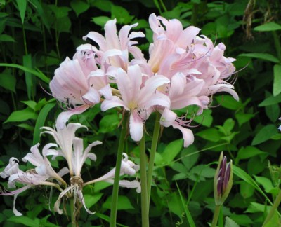 ・花茎は高さ50〜70cmになり、直径約8cmの淡紅紫色の花を数個つける。