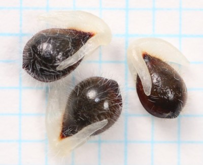 | ・種子は長さ2.5〜3mmの卵形。黒褐色に白い毛が密生する。 |