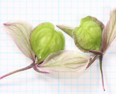 | ・左右の大きい淡紅色の花弁状のものはがく片。 |