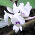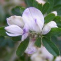 ・茎の上部に紫色の蝶形花をまばらにつける。