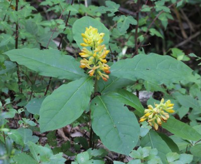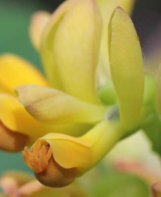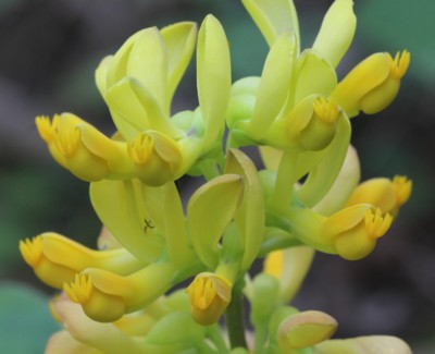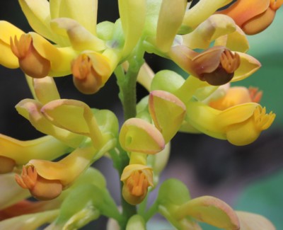 ・茎頂に総状花序を出し、長さ約2cmの橙色を帯びた黄色い花をつける。