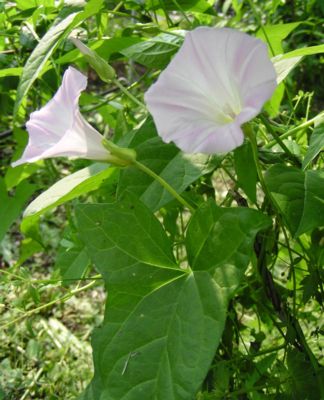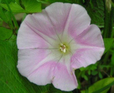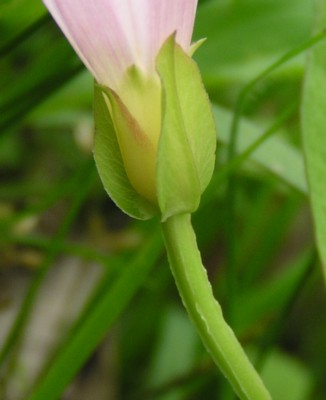 ・葉腋から長い柄を出し、直径3〜4cmで漏斗状の淡紅色の花をつける。