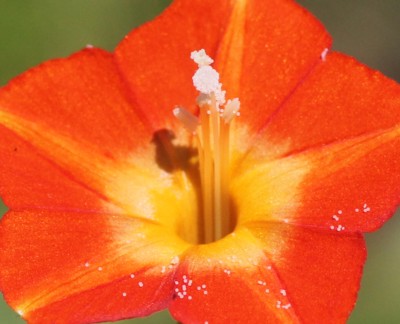 ・花は直径1.5〜2cm、朱赤色で中心部は黄色。
