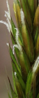 ・花序は長さ3〜7cmの円錐状で、光沢のある小穂を密につける。