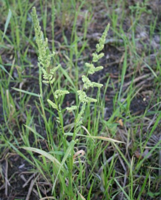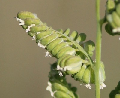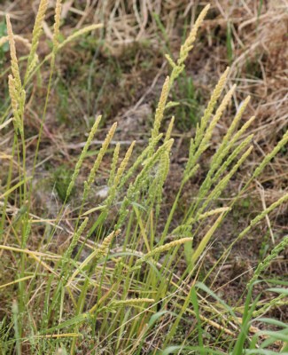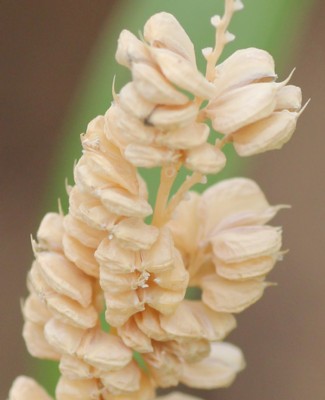 ・茎先に長さ15〜35pの円錐花序を立て、短い枝を左右2列に出し小穂をつける。