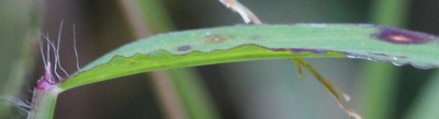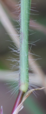 ・葉は長さ8〜20cm、幅0.5〜1.5cmの広線形。葉鞘には長い毛がまばらに生える。