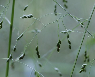 ・花序は長さ12〜30cmの円錐状で、細い枝を多数出し、まばらに小穂をつける。