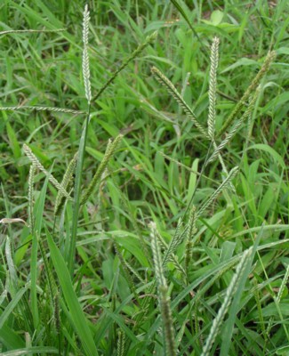 本種に対する名の、メヒシバ属の「メヒシバ」は何処にでも見られる雑草。