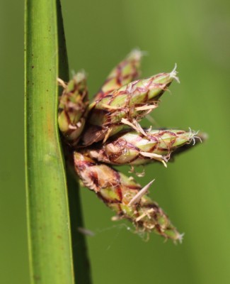 ・茎先に長さ3〜7pの苞が1個直立または開出し、そのわきに4〜10個の小穂を集まってつける。