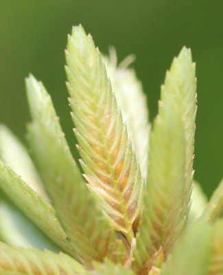 ・小穂は線形で淡黄緑色。20個ほどの小花を二列につける。