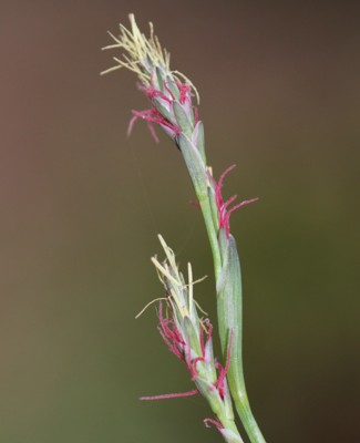 ・小穂の長さは1〜2.5cmで4〜8個あり、上部は雄花、その下に雌花がつく。雌花の頭柱は紅紫色。